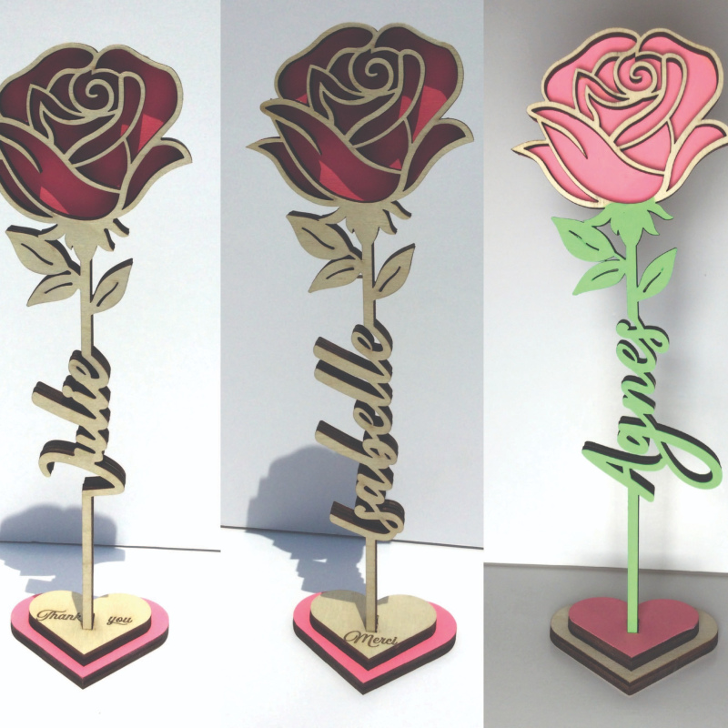 Personalized Wooden Rose/Daisy/Tulip with a heart stand in any language